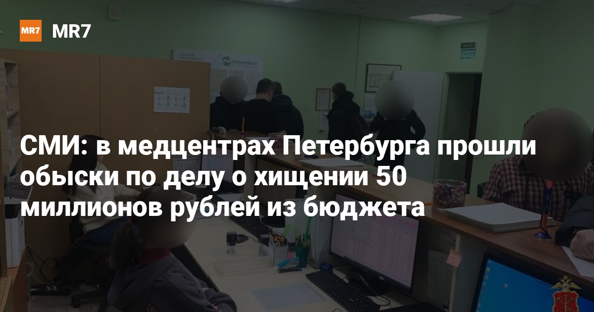Экономическая полиция совместно с УФСБ по Петербургу и Ленобласти провели обыски по делу о хищении средств из городского бюджета, пишет «Фонтанка» 5 февраля. По версии следствия, фигуранты дела зарабатывали на фиктивных профосмотрах — ущерб составил 50 миллионов рублей.