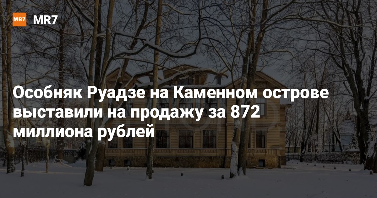 На сайте «Авито» появилось объявление о продаже особняка Руадзе (дача Кожевниковых) на Каменном острове (набережная Малой Невки, 33А). Здание является объектом культурного наследия, оно построено в 1876 году в неорусском стиле.