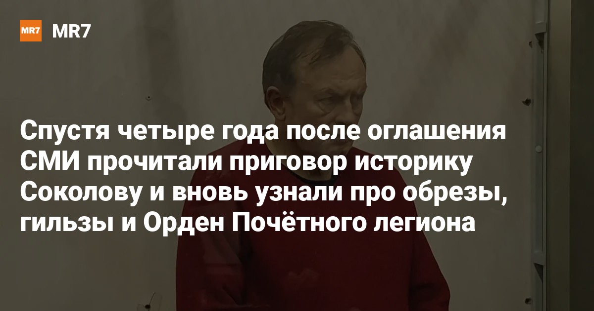 Историку вернули французский орден Почётного легиона и свидетельство о его получении, что также указано в тексте приговора. Помимо награды, Соколов получил обратно два телефона и системный блок компьютера.