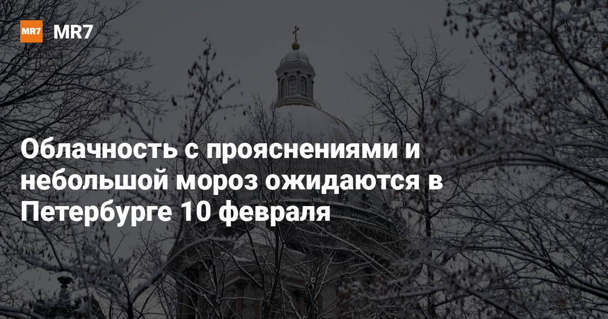 Сухая и облачная с прояснениями погода ожидается в Петербурге 10 февраля, сообщил ведущий специалист центра «Фобос» Михаил Леус.