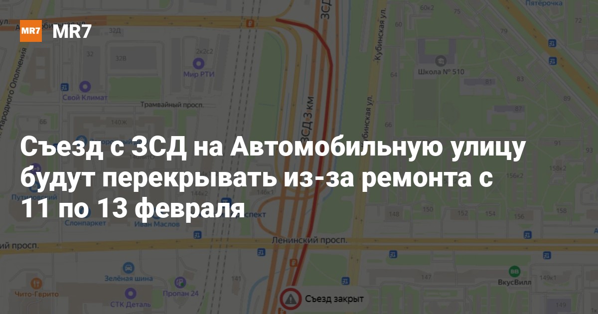 Съезд с ЗСД на Автомобильную улицу будет закрыт: