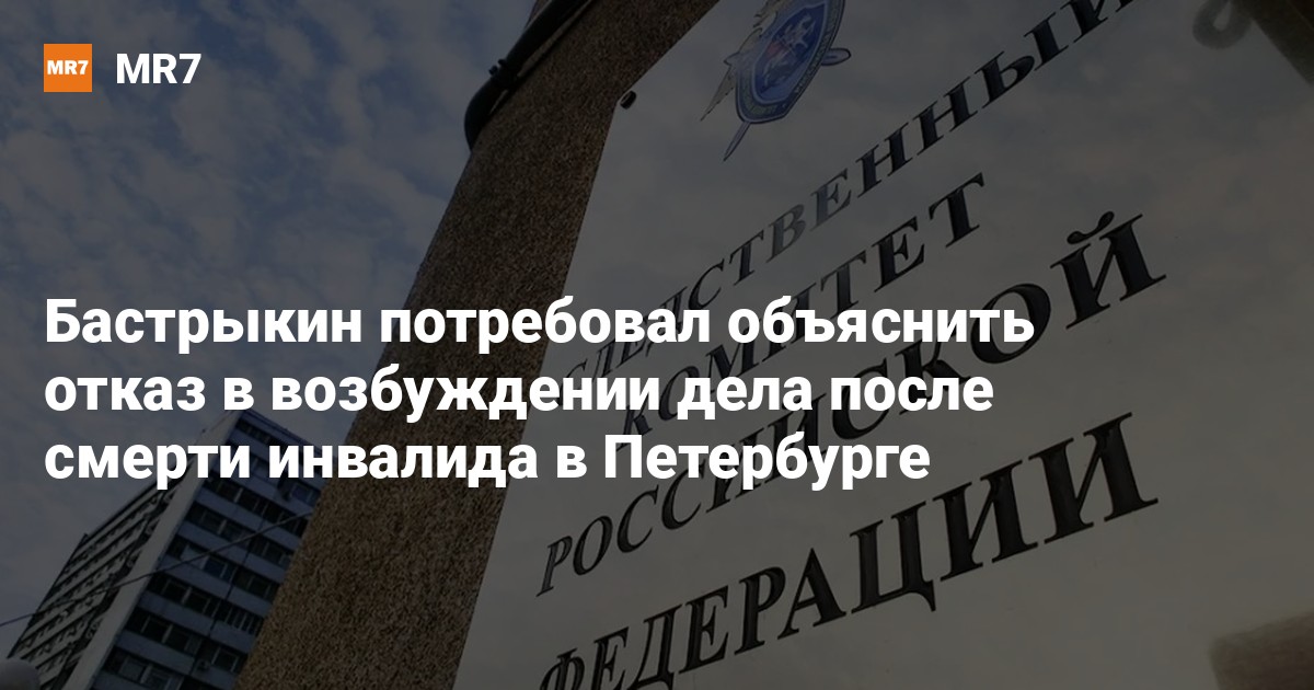В январе 2023 года пациент скончался, и женщина предполагает, что к летальному исходу могла привести неверно выбранная тактика лечения. Бастрыкин поручил руководителю петербургского следственного комитета Олегу Бобкову доложить о причинах отказа в возбуждении уголовного дела.