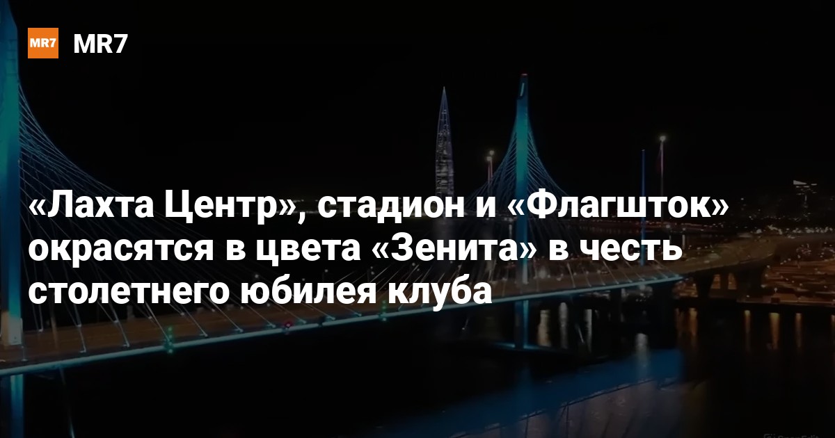 Главные объекты Газпрома в Петербурге сегодня, 15 февраля, получат праздничную подсветку в честь столетнего юбилея «Зенита».