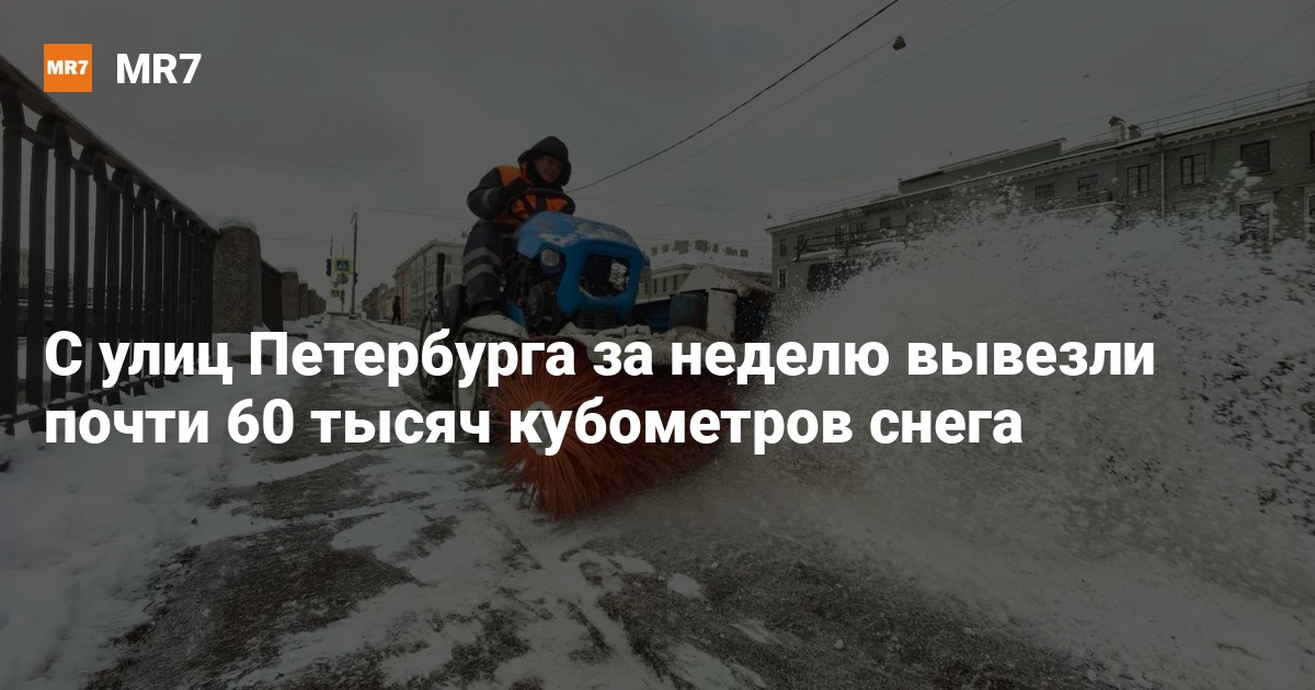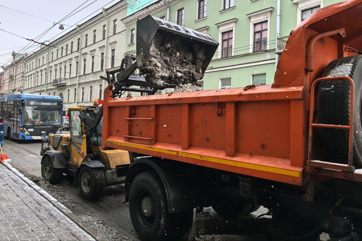 За прошлую неделю с улиц Петербурга вывезли почти 60 тысяч кубометров снега, порядка 900 кубометров мусора и 166 тонн смета, сообщили 17 февраля в комитете по благоустройству города.