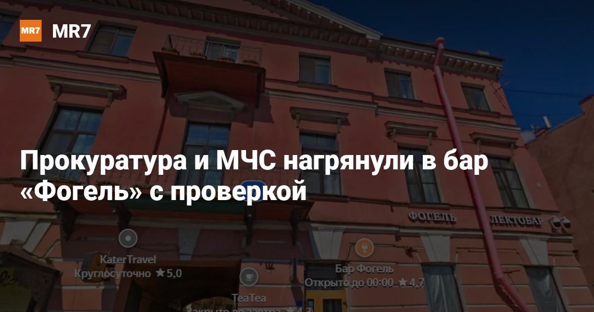 В баре «Фогель», который находится на набережной Фонтанки, 97, вечером 18 февраля проводят проверку прокуратура и МЧС, сообщил 78.ru.