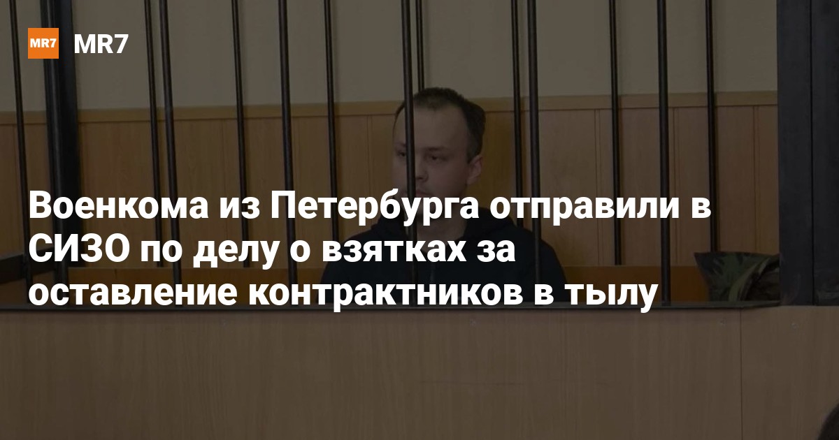 Дзержинский районный суд Петербурга отправил под арест начальника отделения военкомата Красносельского района Ярослава Паламарчука, обвиняемого по части 3 статьи 291.1 УК РФ (посредничество во взяточничестве), сообщили 20 февраля в пресс-службе судов. По этой статье ему грозит от пяти до десяти лет лишения свободы.