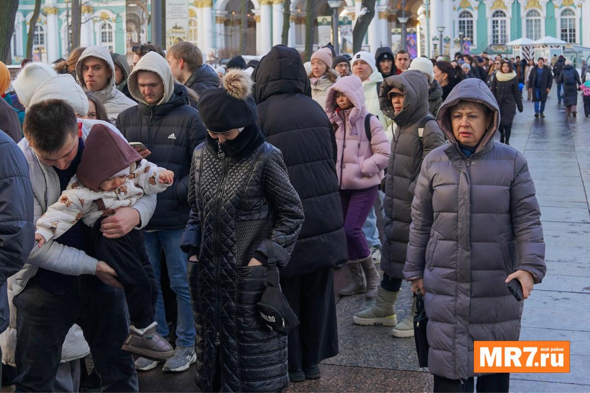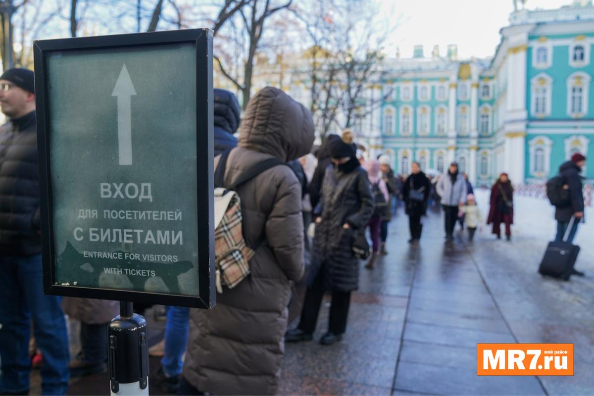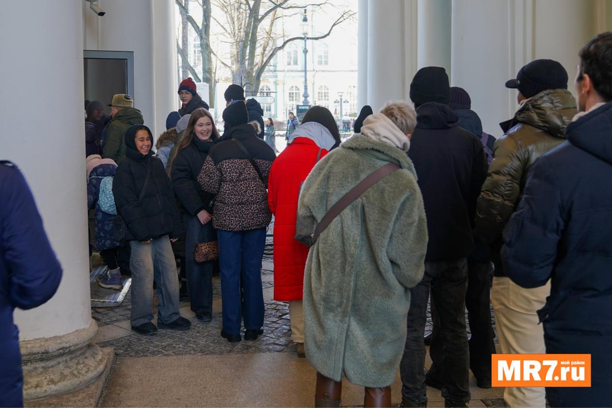 Очереди у главного входа в Эрмитаж образовались с самого утра 23 февраля.