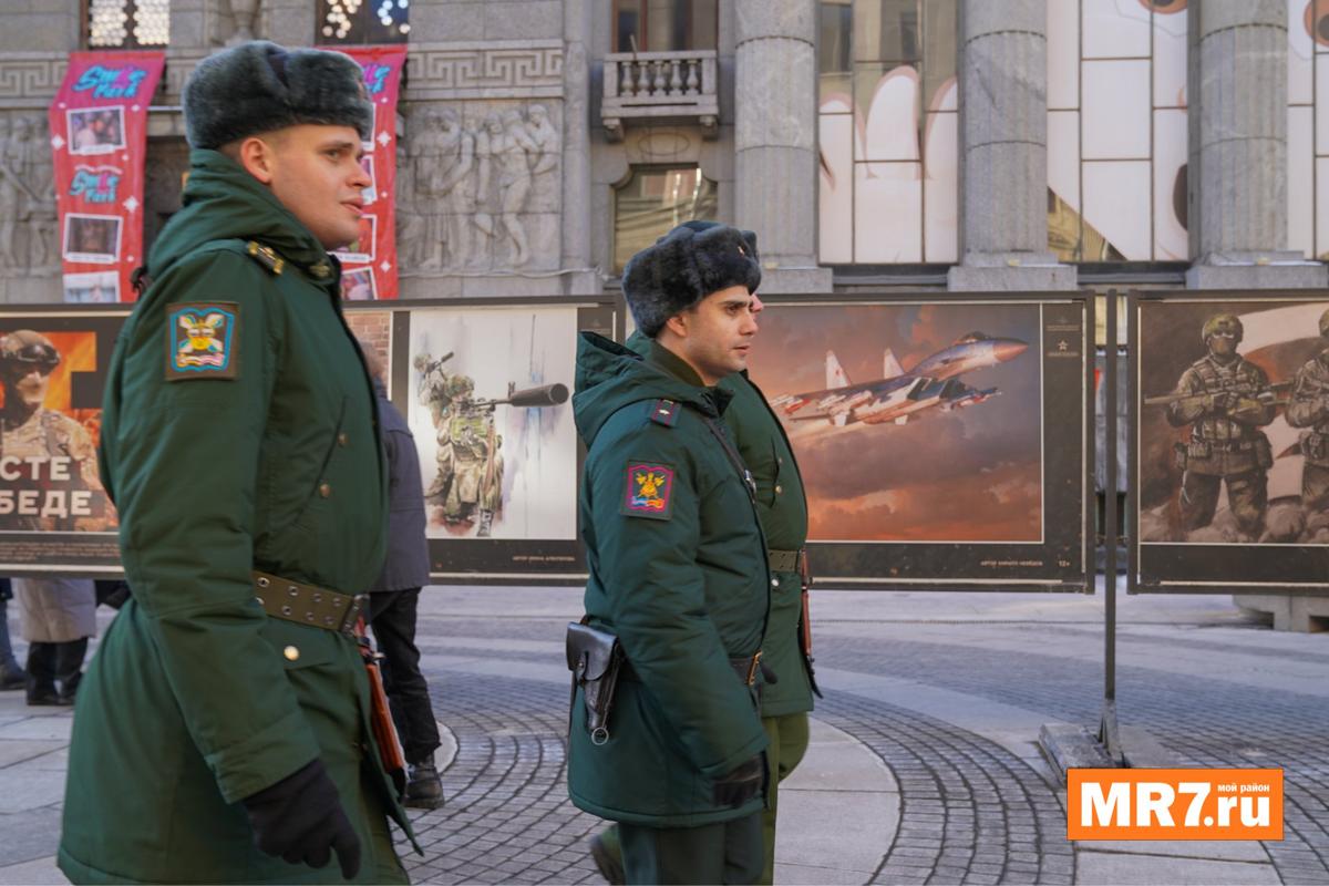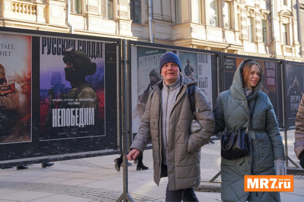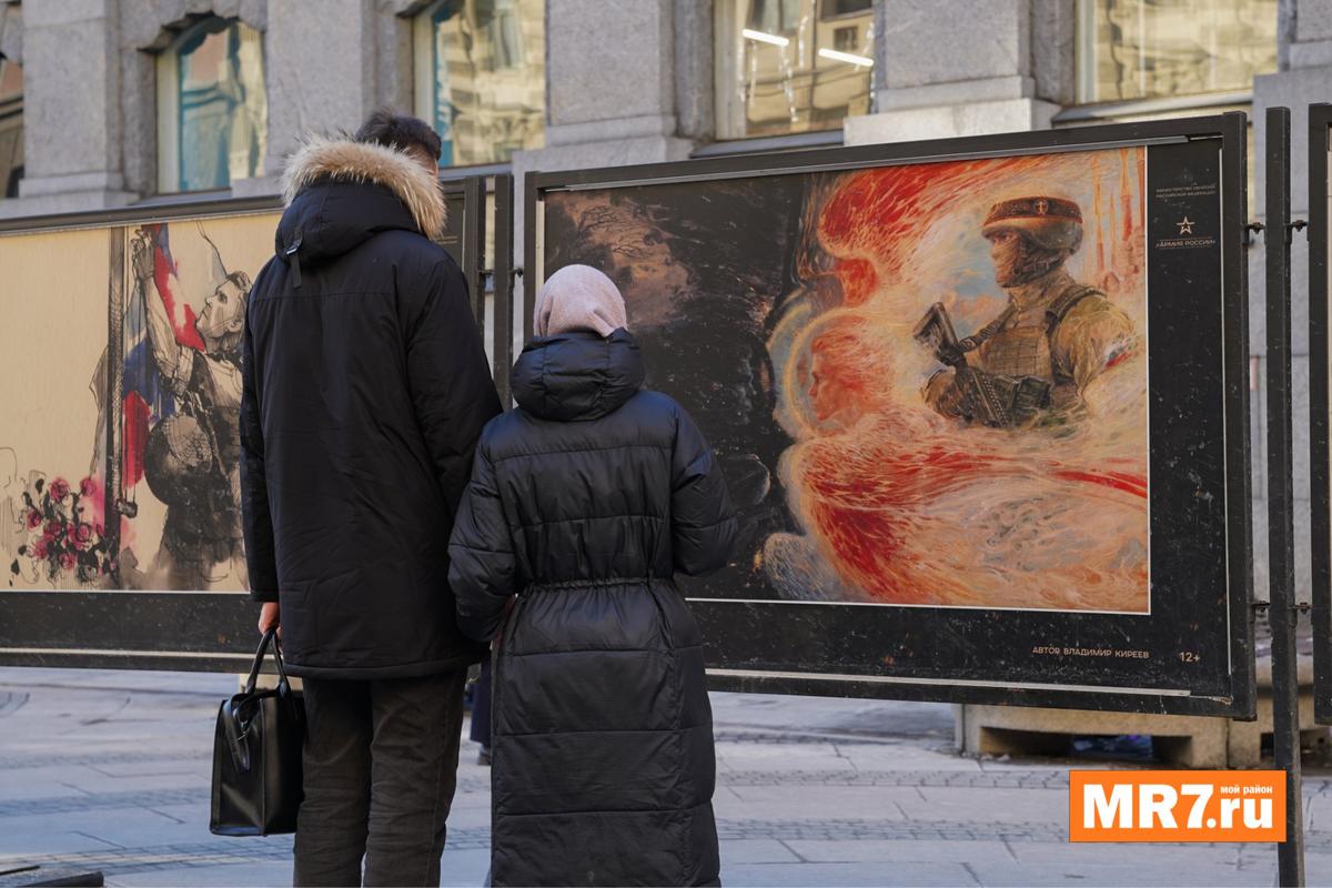 Если всё же не удастся до конца дня выстоять очередь в Эрмитаж, можно хотя бы взглянуть на уличную выставку о специальной военной операции «Сердцем и кистью», которая появилась на Большой Морской улице в ноябре прошлого года.