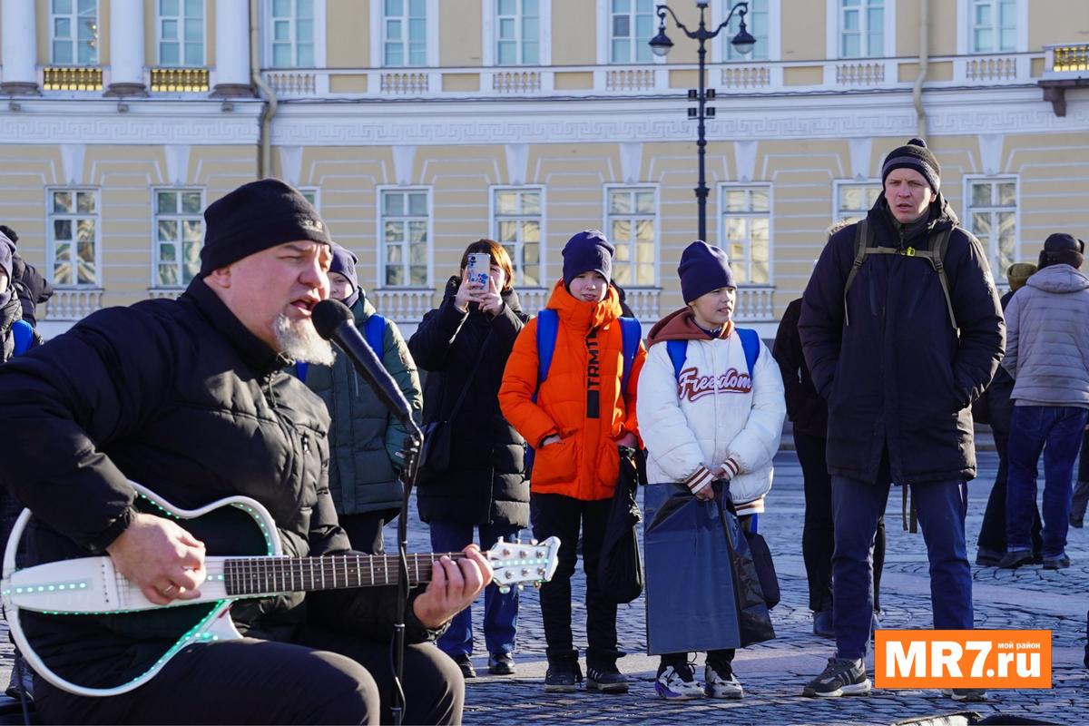 Зато нет больших столпотворений возле уличных музыкантов. Сегодня на Дворцовой площади поют по-настоящему мужские песни. Например, корреспонденту MR7 удалось услышать один из хитов группы «Би-2»* «Полковнику никто не пишет».