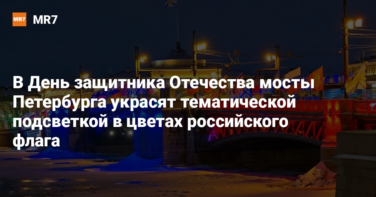 Вечером 23 февраля три петербургских моста окрасятся в цвета российского триколора в честь Дня защитника Отечества. Об этом сообщили в пресс-службе Смольного.