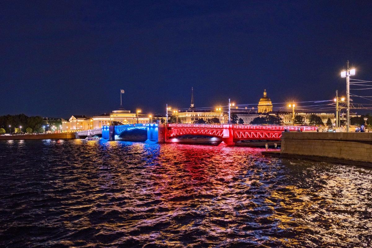 В 18:15 свой световой режим изменят Дворцовый и Троицкий мосты, а также мост Бетанкура. Подсветка будет работать в соответствии с графиком наружного освещения до 8:10 утра 24 февраля.