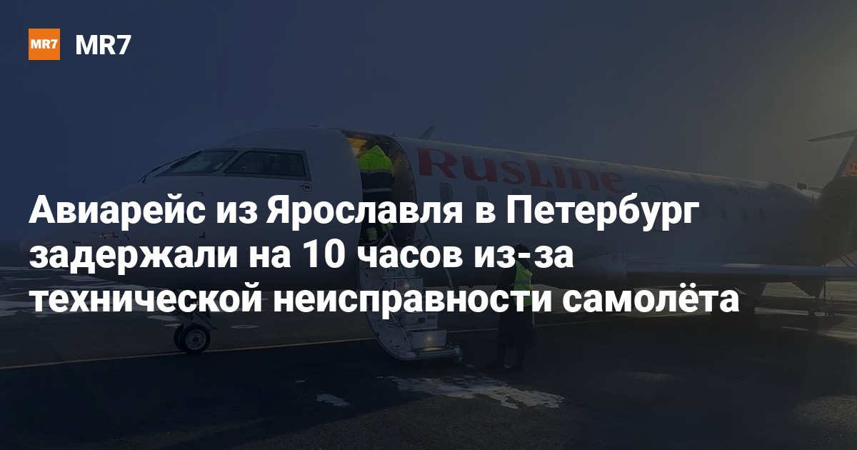 Авиарейс Ярославль — Петербург, запланированный на 21:40 23 февраля, не смог вылететь вовремя из-за технической неисправности самолёта. Об этом сегодня сообщили в пресс-службе Северо-Западной транспортной прокуратуры (СЗТП).