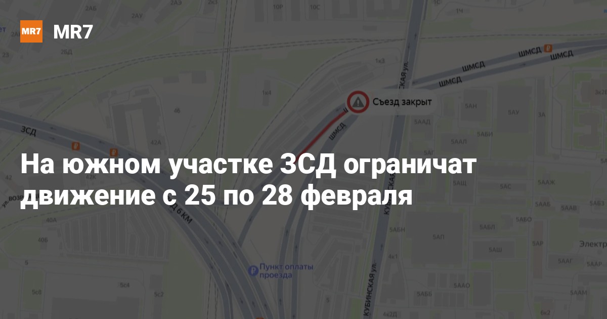 В связи с работами по модернизации систем управления дорожным движением с 25 по 28 февраля будет ограничиваться проезд на южном участке ЗСД, сообщили в telegram-канале Западного скоростного диаметра.
