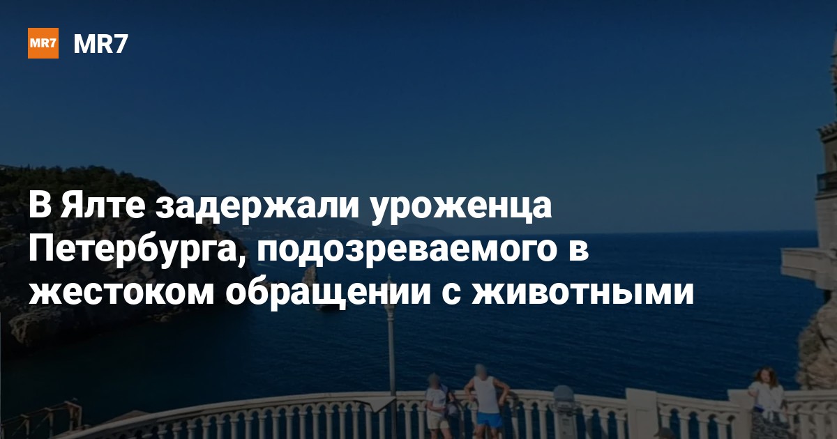 Мужчина выбросил кошку с обрыва на территории архитектурно-выставочного комплекса «Ласточкино гнездо» в Ялте. По подозрению в преступлении задержан 24-летний уроженец Петербурга, сообщила официальный представитель МВД РФ Ирина Волк 24 февраля.