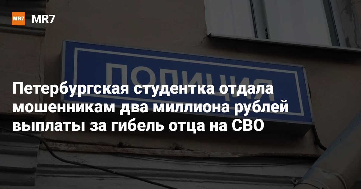 В Петербурге 19-летняя студентка университета «Промтехдизайн» отдала телефонным мошенникам два миллиона рублей. Эти средства ей выплатили за погибшего на СВО отца, сообщила «Фонтанка».