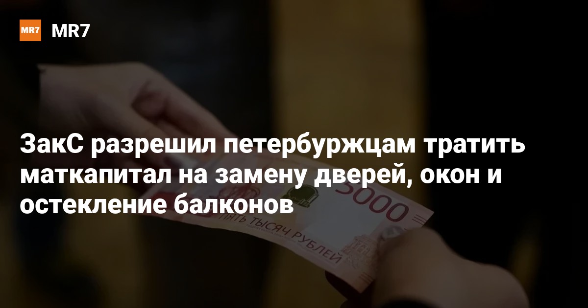 Заксобрание Петербурга в окончательном третьем чтении принял законопроект, по которому материнский капитал разрешают тратить на замену окон и дверей, остекление балконов и лоджий.