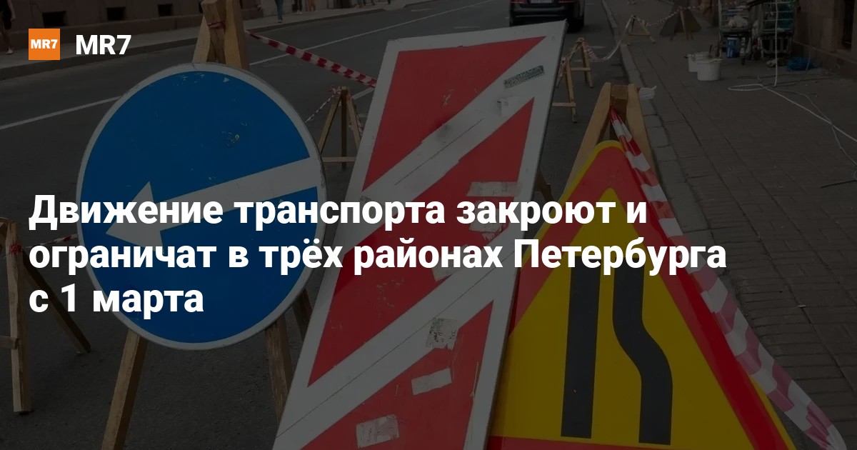 Движение транспорта закроют и ограничат в Василеостровском, Красносельском и Петроградском районах Петербурга с 1 марта, сообщили в пресс-службе ГАТИ.
