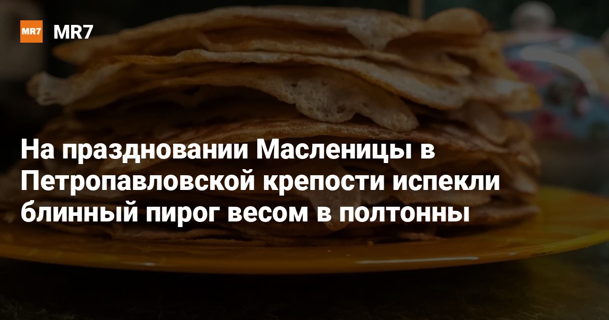 В Петропавловской крепости, где 2 марта проходил праздник «Зажигай, сударыня Масленица», испекли огромный блинный пирог. Его вес составил 500 килограммов, сообщил ТАСС.