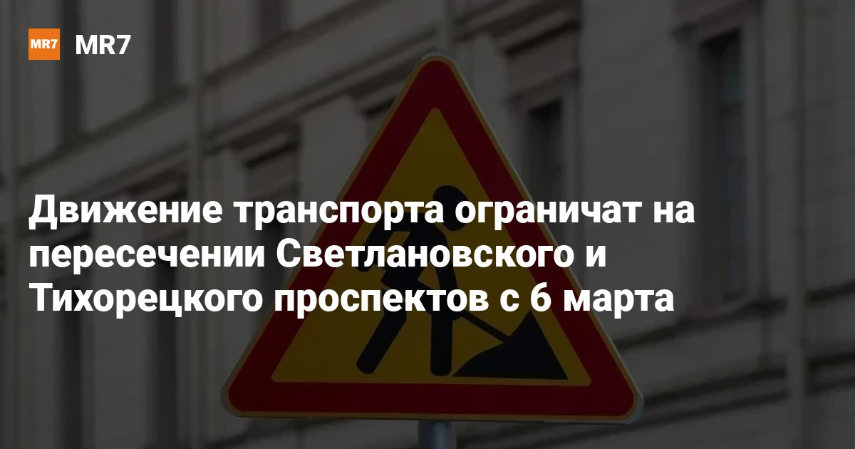Движение транспорта будет ограничено на перекрестке Тихорецкого и Светлановского проспектов с 6 марта, сообщили в пресс-службе ГАТИ. Дорога будет сужена до 4 апреля.