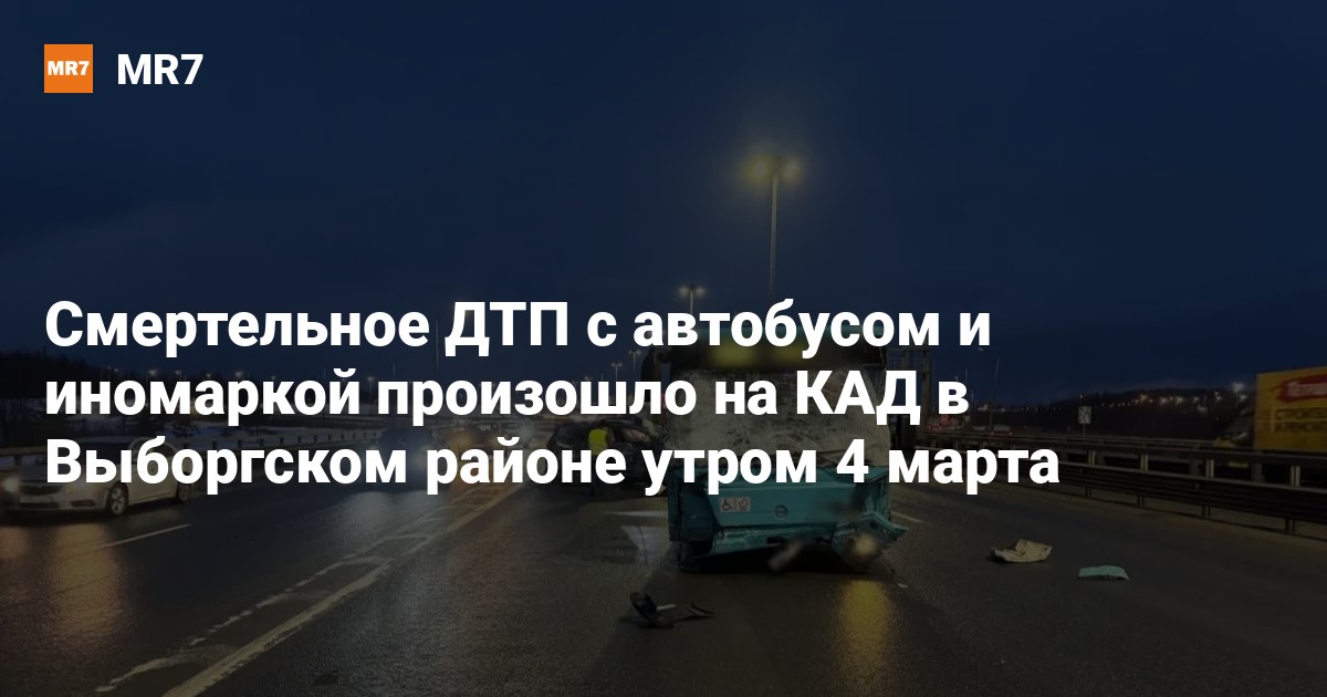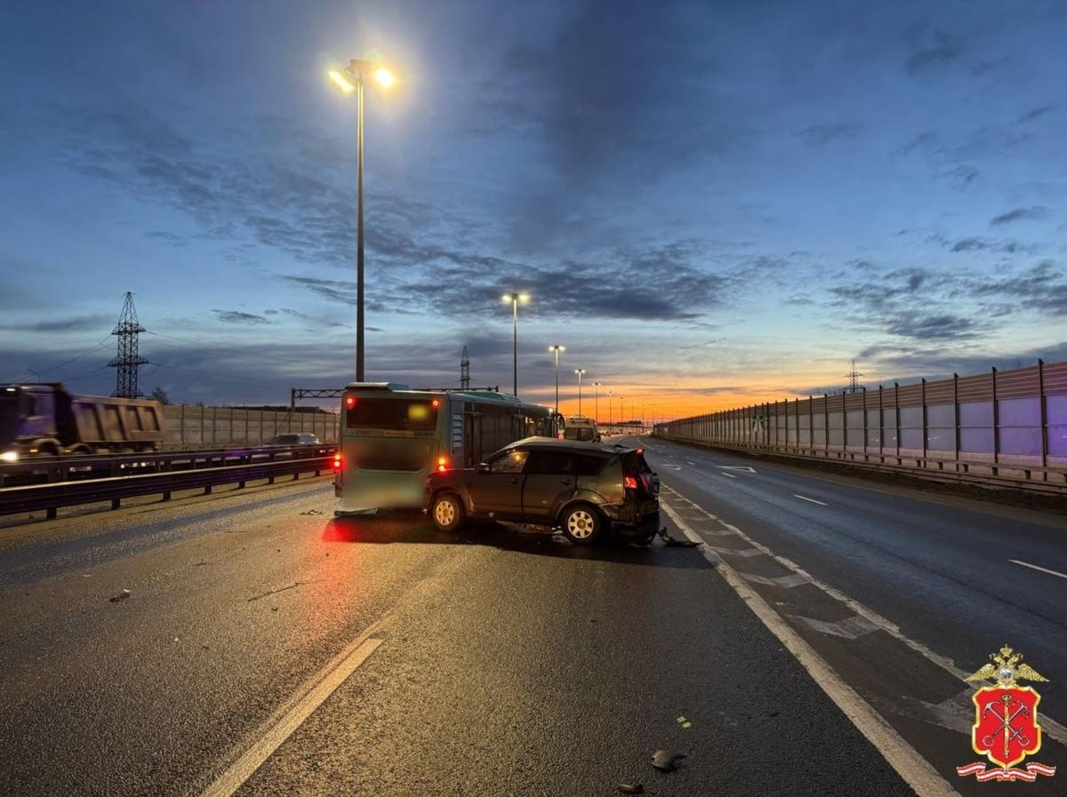 Лазурный автобус ЛиАЗ и «Мицубиси Аутлендер» столкнулись на 19-м километре внутреннего кольца КАД в Выборгском районе Петербурга утром 4 марта, сообщает пресс-служба ГУ МВД РФ по Петербургу и Ленобласти.