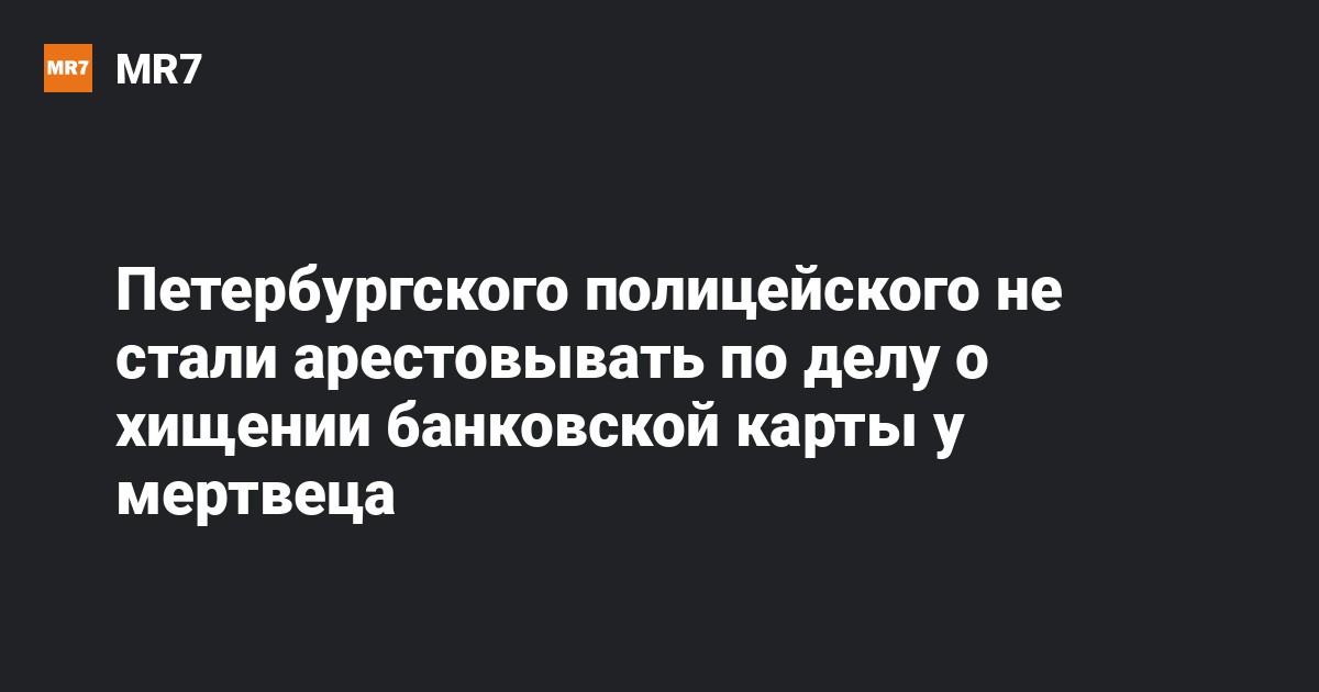 Петербургского полицейского не стали арестовывать по делу о хищении банковской карты у мертвеца