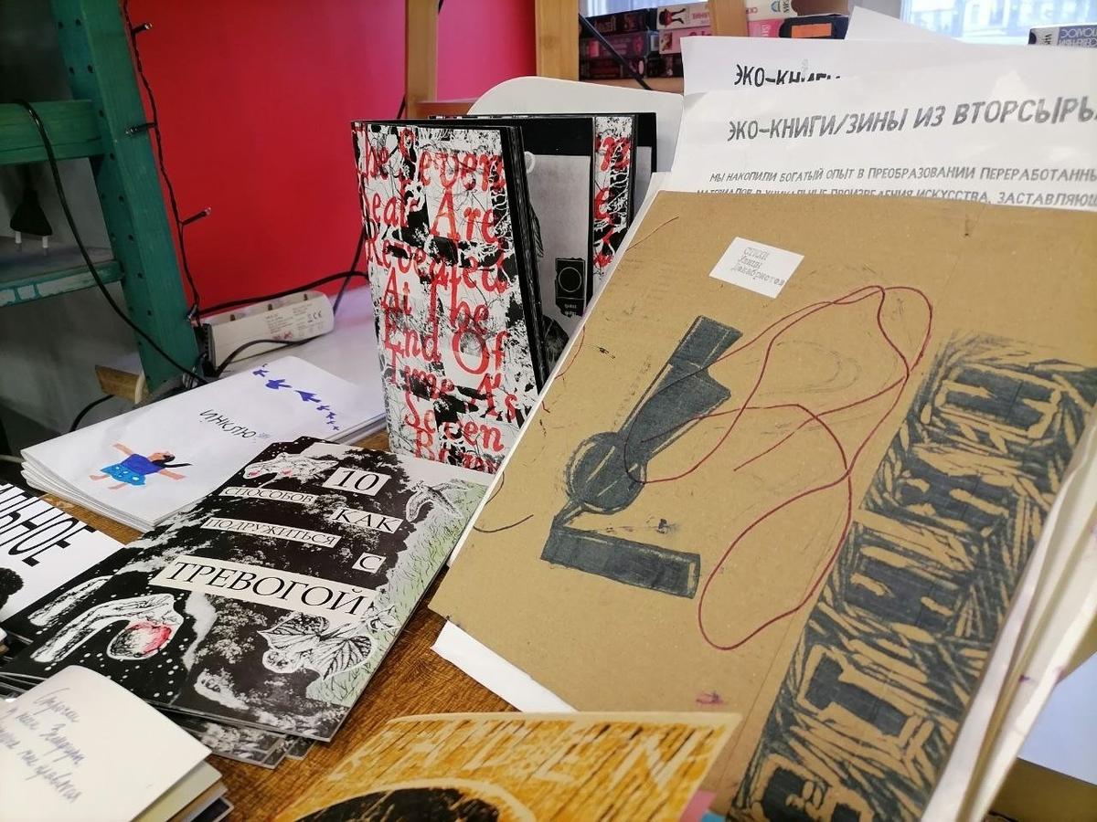 Зины в книжном и показывают, и продают. А ещё проводят тематические мероприятия. До конца месяца в программе встречи с авторами зинов, лекции про книги и фотографии.