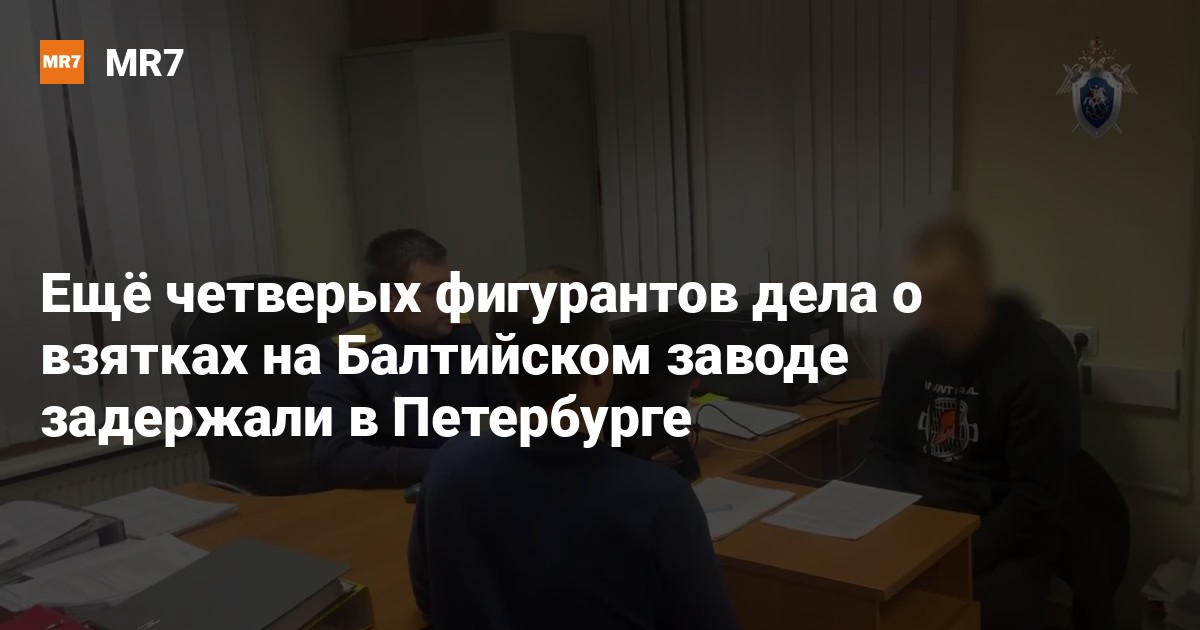 Петербургские следователи задержали четверых подозреваемых в получении взяток сотрудников Балтийского завода. Об этом 12 марта сообщили в пресс-службе ГСУ СК РФ по Петербургу.