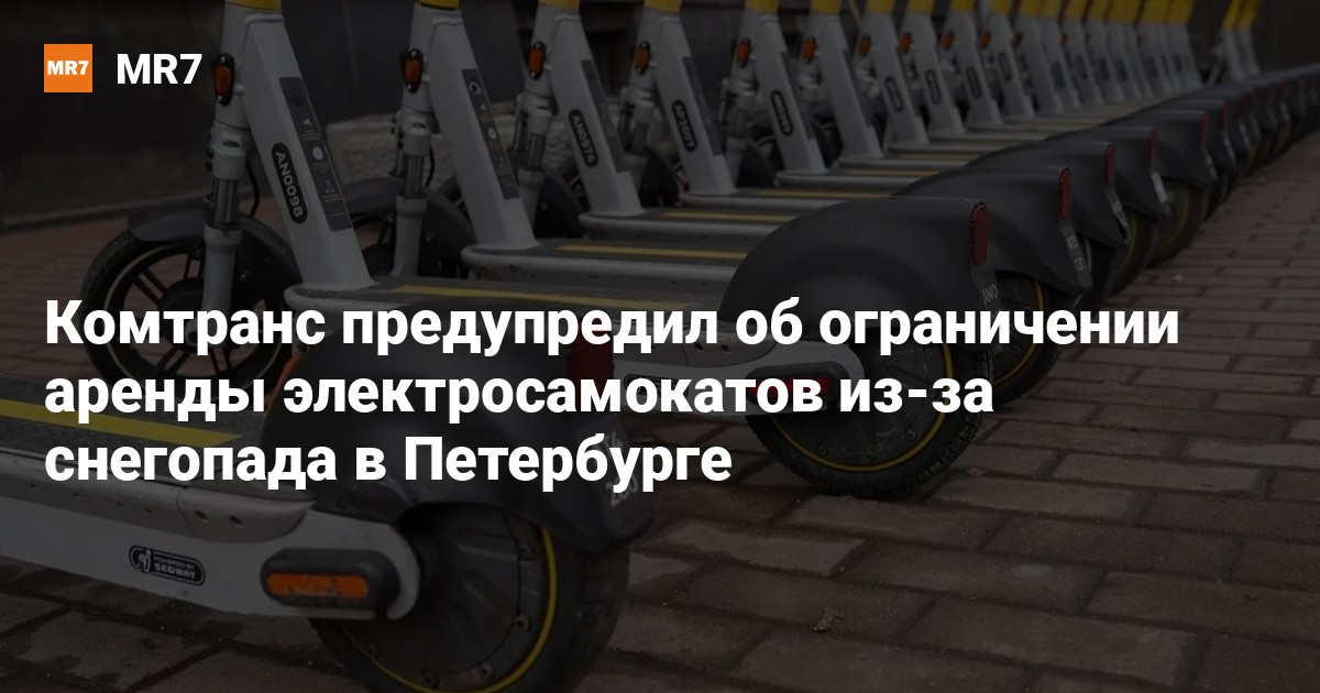 В следующие несколько дней в Петербурге кикшеринговые сервисы могут ограничить поездки на электросамокатах из-за непогоды, сообщил комтранс.