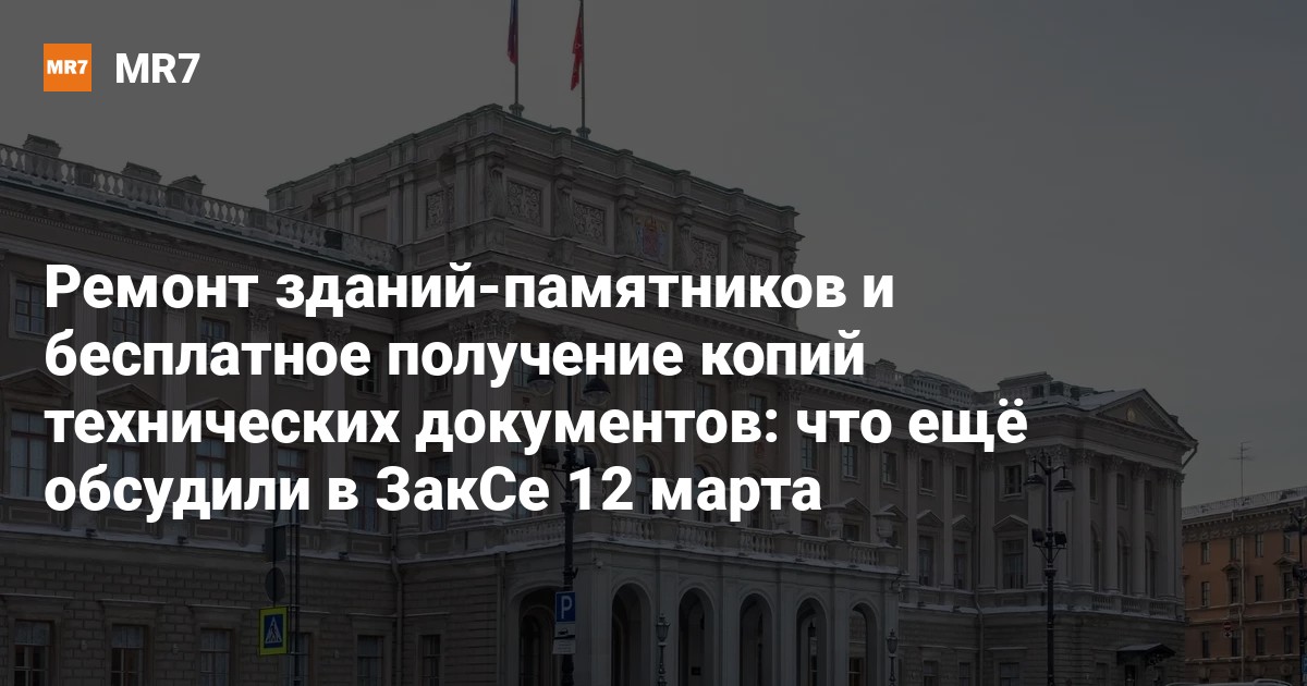 Ремонт зданий-памятников, точки продажи энергетиков и категории петербуржцев, имеющих право на бесплатное получение копий технических документов обсудили депутаты Заксобрания Петербурга на заседании 12 марта. Рассказываем, какие законы были приняты сегодня.