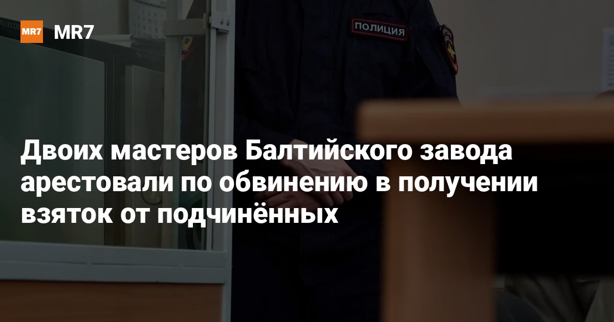 Как сообщал MR7, о задержании четверых подозреваемых в получении взяток на Балтийском заводе стало известно 12 марта. Всем им предъявили обвинение по уголовным делам о получении взяток должностным лицом в крупном размере. Перед задержаниями на предприятии прошли обыски.
