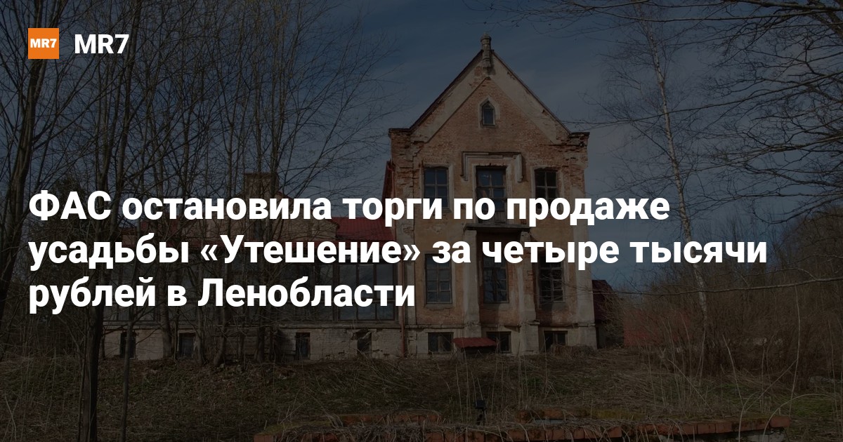 Подведение итогов аукциона по продаже памятника архитектуры регионального значения усадьбы «Утешение» (Кингисеппский район Ленобласти) не состоялось в связи с поступлением жалобы. Информация об этом появилась 13 марта на сайте «ГИС Торги»