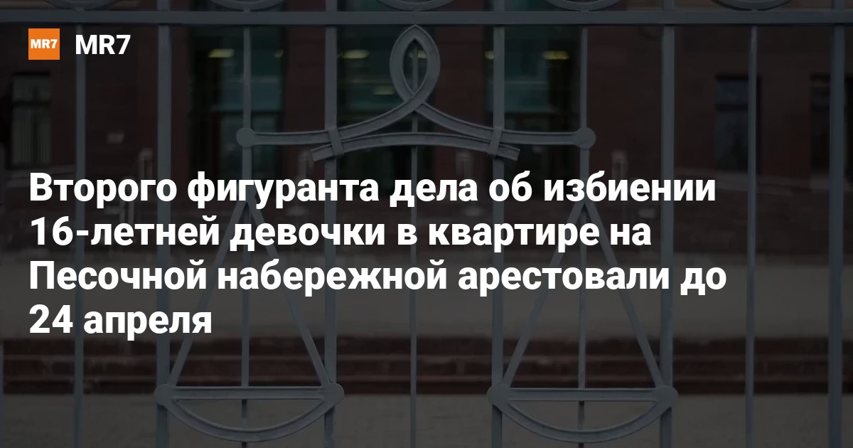 Петроградский районный суд отправил под арест Владислава Иванова — второго фигуранта дела об избиении 16-летней девочки в квартире на Песочной набережной, сообщили в объединённой пресс-службе судов Петербурга 14 марта. По версии следствия, петербуржец и его друг обманом пригласили знакомую в гости, избили металлическим прутом и заставили принять наркотики.