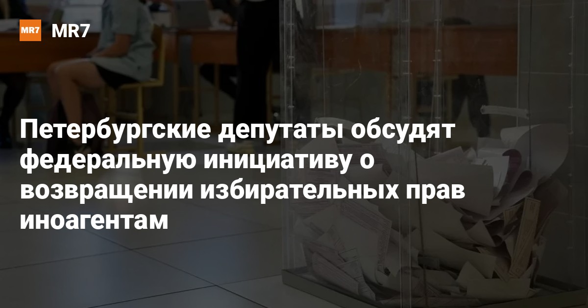Фракция «Яблоко» в Заксобрании Петербурга внесла в парламент законопроект о возвращении избирательных прав иноагентам, который хотят предложить Госдуме к принятию на федеральном уровне. Об этом MR7 рассказали в пресс-службе петербургского отделения партии 18 марта.
