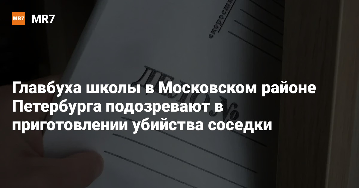 Главного бухгалтера одной из школ в Московском районе Петербурга задержали по подозрению в покушении на приготовление к убийству, сообщает «Фонтанка» 19 марта.