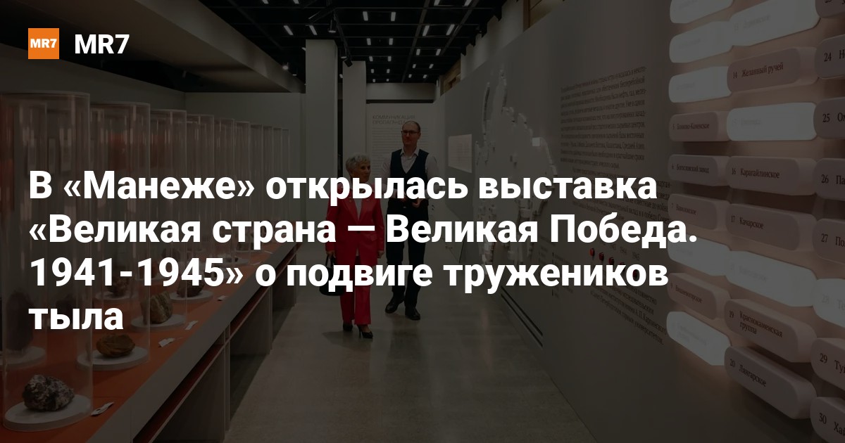 В центральном выставочном зале «Манеж» 21 марта представили историко-документальный проект, приуроченный к 80-летию Победы в Великой Отечественной войне, — «Великая страна — Великая Победа. 1941-1945». Выставка посвящена подвигу тружеников тыла.
