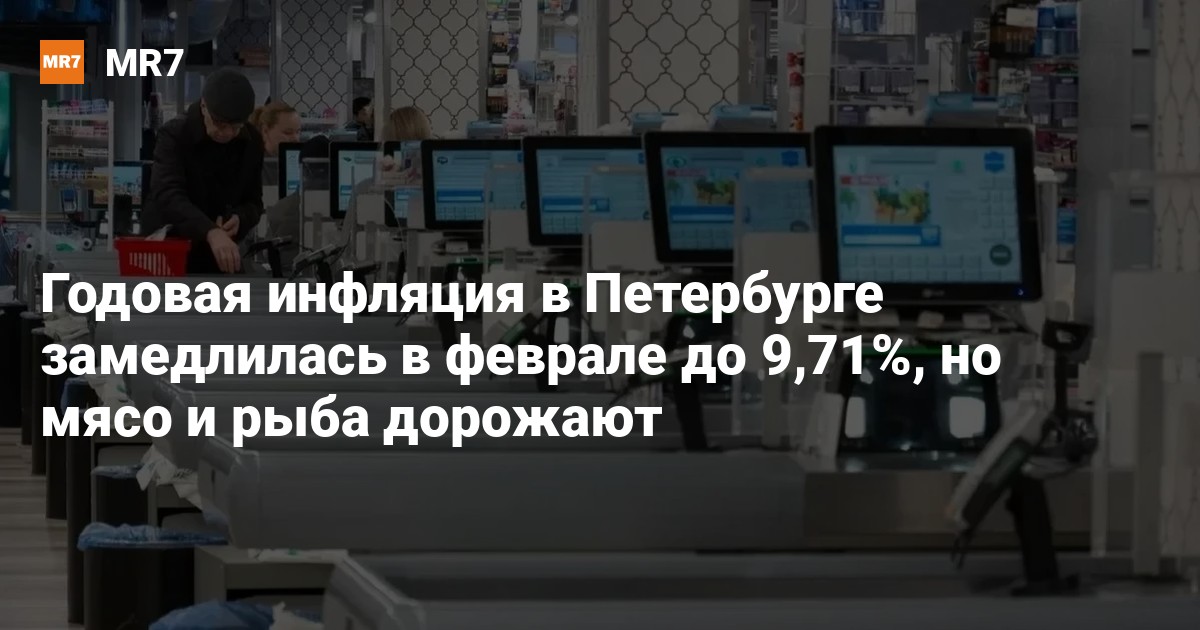 В Петербурге годовая инфляция в феврале 2025 года замедлилась и составила 9,71% — в январе она была 10,16%, сообщили 25 марта в ГУ Банка России по Северо-Западу.