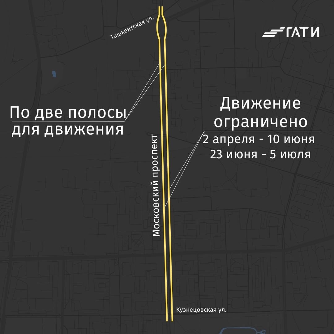 Из-за ремонта дорожного полотна на Московском проспекте до середины лета будут действовать ограничения движения транспорта. Об этом 31 марта рассказали в пресс-службе ГАТИ.