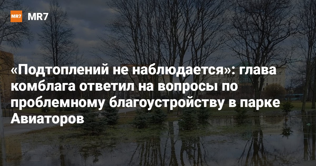Также Петриченко заявил, что отсутствие дренажной системы никак не повлияет на время закрытия парка Авиаторов на просушку, и сказал, что «на сегодняшний день подтоплений в парке Авиаторов не наблюдается». Такую информацию, по словам главы комблага, 31 марта ему передали сотрудники СПП.