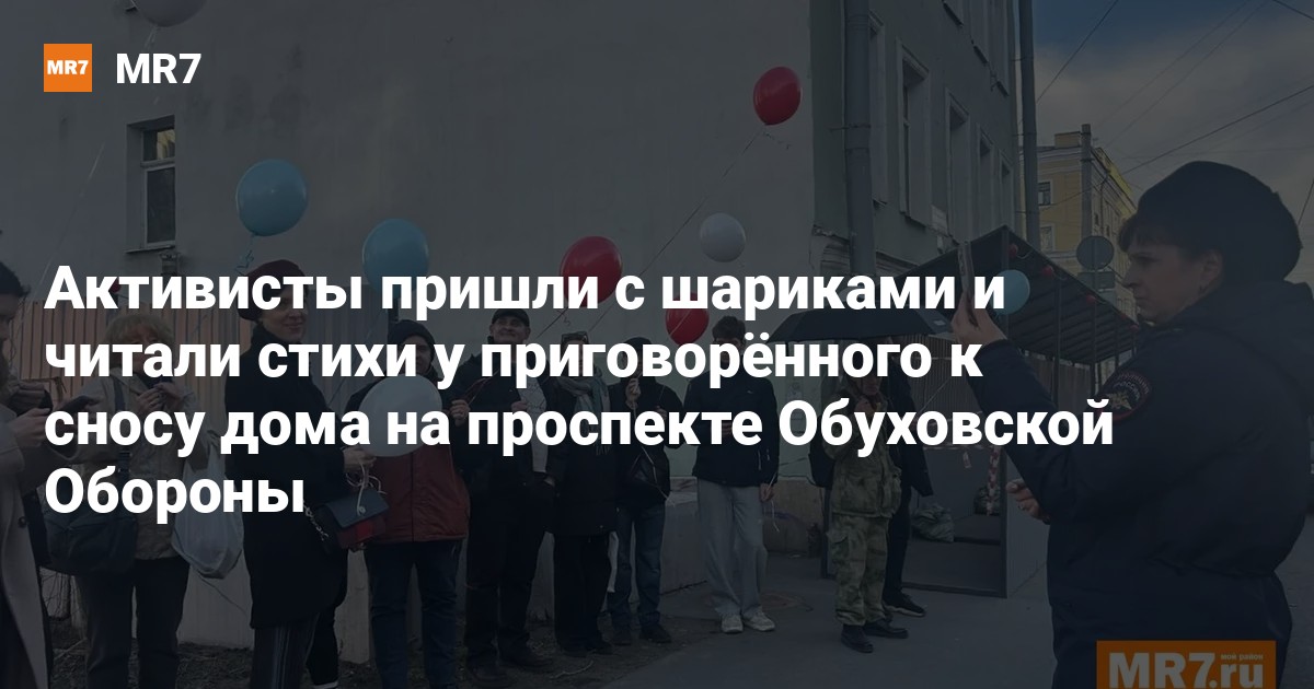 Вечером 3 апреля на проспекте Обуховской Обороны у дома 68 звучали стихи Ольги Берггольц. Около 20 человек собрались с воздушными шариками — так активисты хотят остановить снос исторического, довоенного дома.