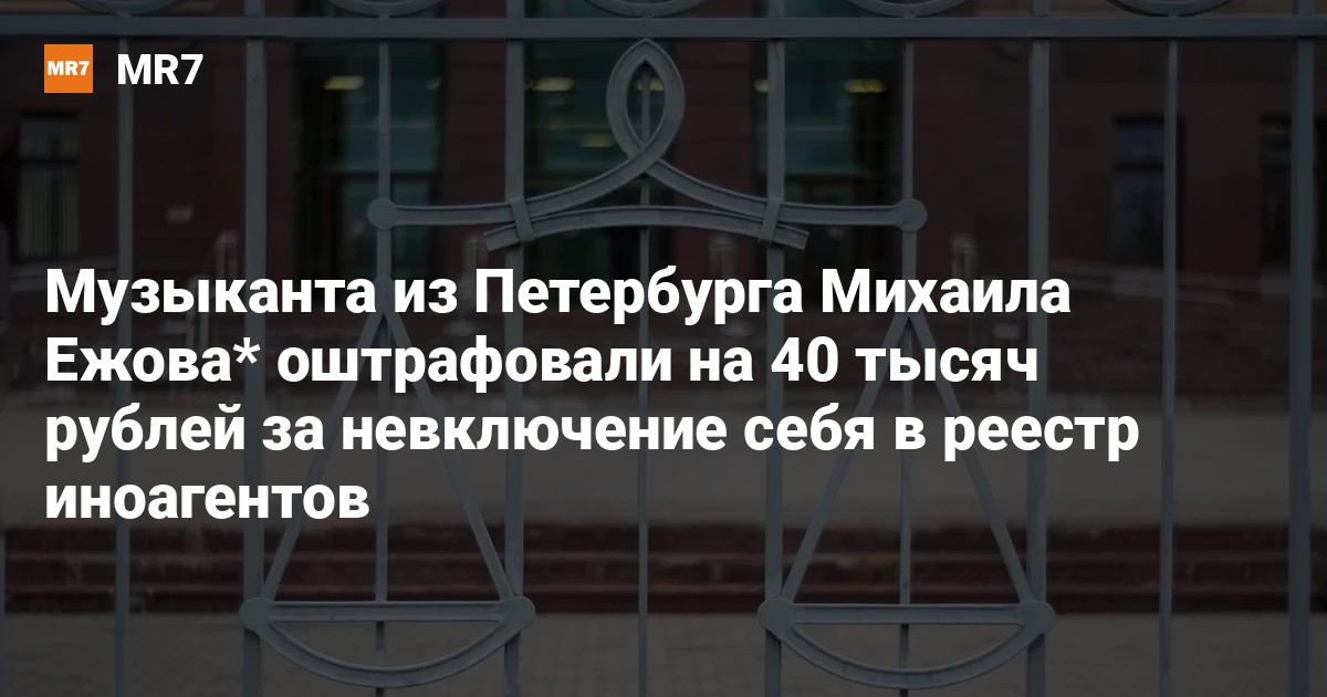 Петроградский районный суд оштрафовал на 40 тысяч уроженца Ленинграда музыканта и видеодизайнера Михаила Ежова* по статье о недонесении на себя как на иноагента. Об этом рассказали в объединённой пресс-службе судов Петербурга 3 апреля.