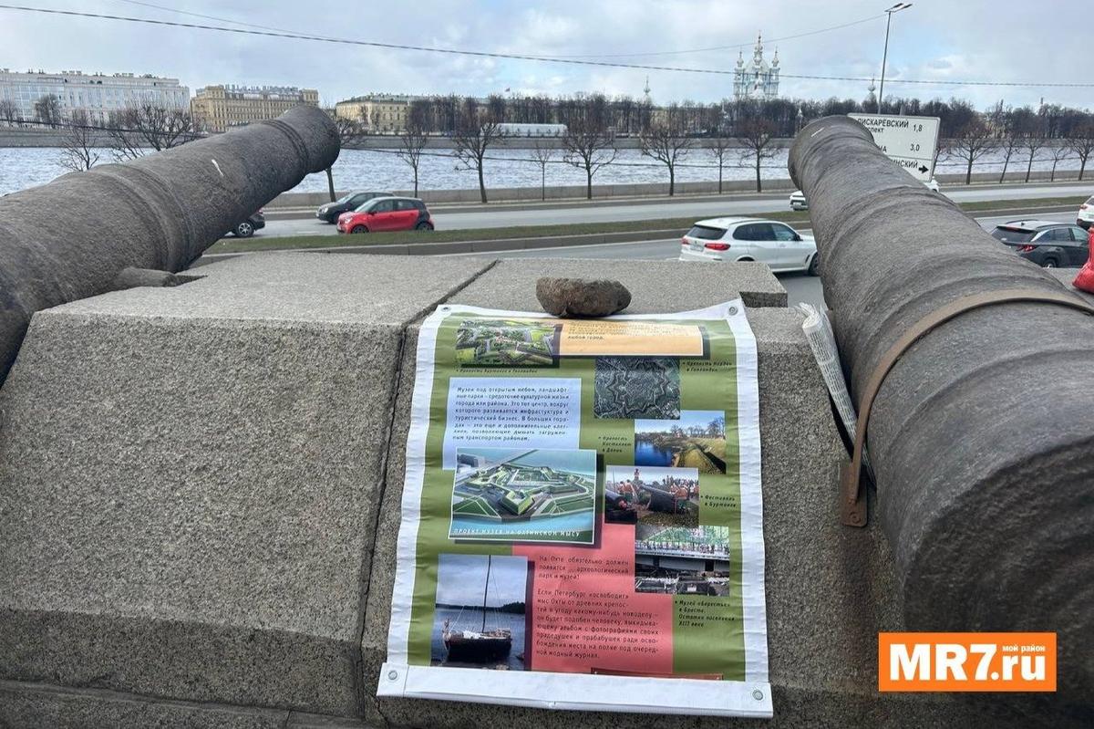 Около двух десятков человек собралось у памятного знака на набережной. Петербуржцы требуют остановить строительство и сделать остатки древних крепостей археологическим заповедником.