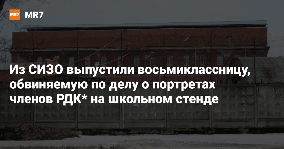 В Петербурге освободили из СИЗО № 5 на Арсенальной набережной ученицу восьмого класса, которую обвиняют по части 1 статьи 205.2 (публичные оправдание или пропаганда терроризма), сообщает RusNews.