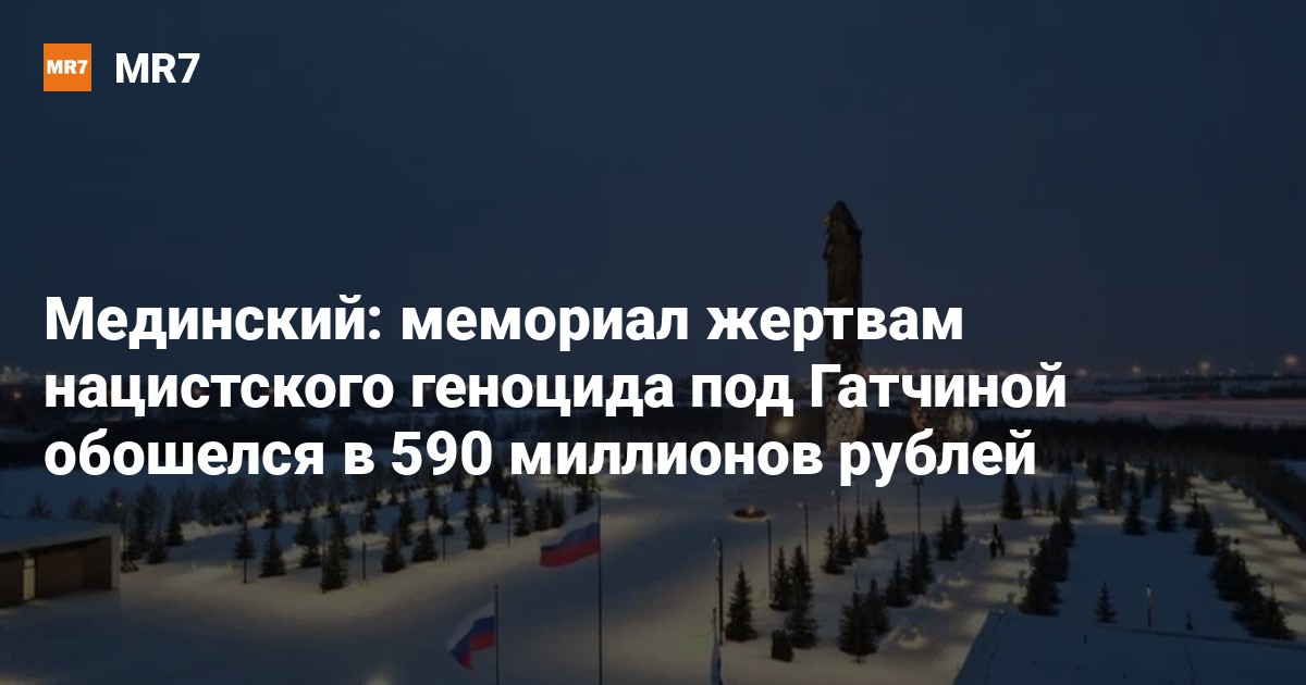 Мемориальный комплекс «Мирным гражданам Советского Союза, погибшим в ходе Великой Отечественной войны» в деревне Зайцево (Гатчинский район Ленобласти) обошелся в 590 миллионов рублей. Об этом 9 апреля сообщил РБК помощник президента России, председатель Российского военно-исторического общества (РВИО) Владимир Мединский.