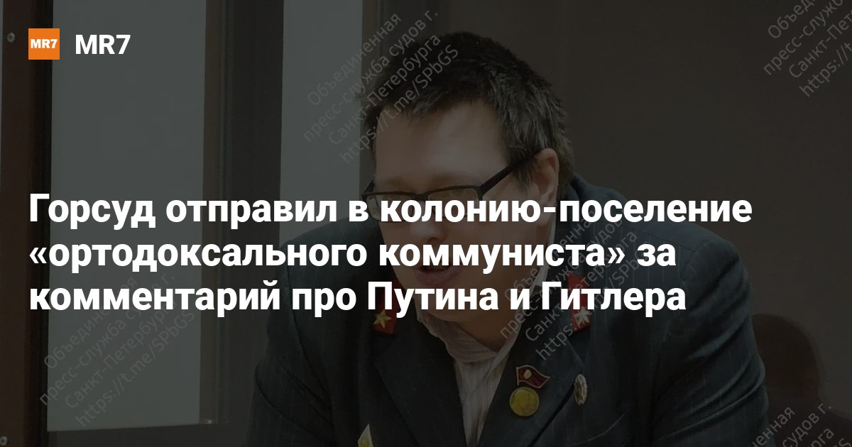 Горсуд назначил год и восемь месяцев в колонии-поселении Дмитрию Денисову, признанному виновным в реабилитации нацизма за публикацию про президента РФ Владимира Путина и канцлера нацистской Германии Адольфа Гитлера. Подробности 17 апреля рассказали в пресс-службе судов Петербурга.