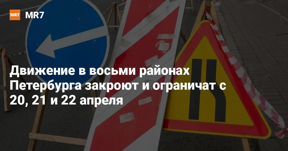 Движение закроют и ограничат в Василеостровском, Курортном, Коллпинском, Красногвардейском, Приморском, Центральном, Выборгском и Пушкинском районах Петербурга с 20, 21 и 22 апреля, сообщает ГАТИ