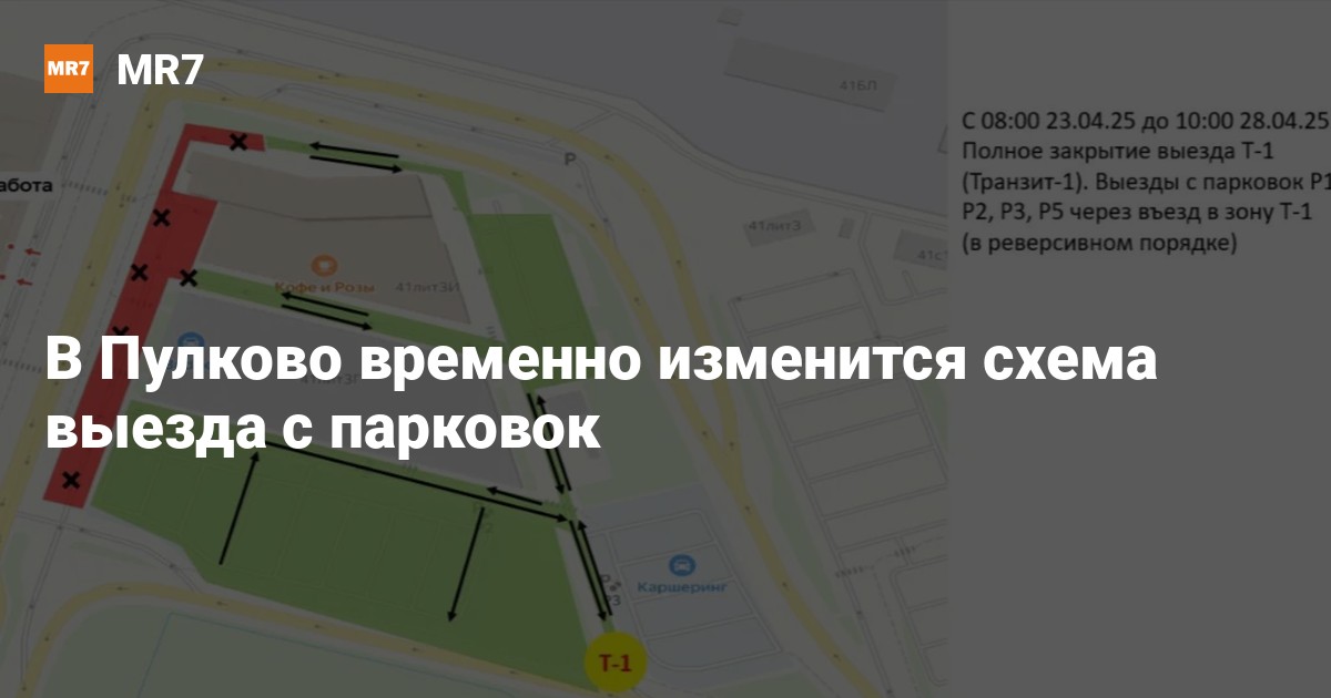 С 08:00 23 апреля будет закрыт выезд в зоне «Транзит-1». Работы продлятся ориентировочно до 28 апреля. В этот период выезд с парковок будет организован в реверсивном порядке через въезд в зону «Транзит-1».