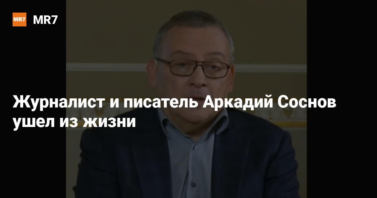 20 апреля стало известно о смерти журналиста, редактора и писателя Аркадия Соснова. Он скончался в возрасте 76 лет после продолжительной болезни. О его кончине сообщил Союз журналистов Петербурга и Ленинградской области.