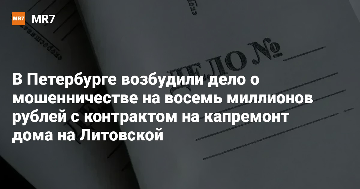 В Петербруге возбудили уголовное дело о мошенничестве при проведении капитального ремонта дома № 8, литера А по Литовской улице после проверки прокуратуры. Об этом 23 апреля сообщили в пресс-службе ведомства.