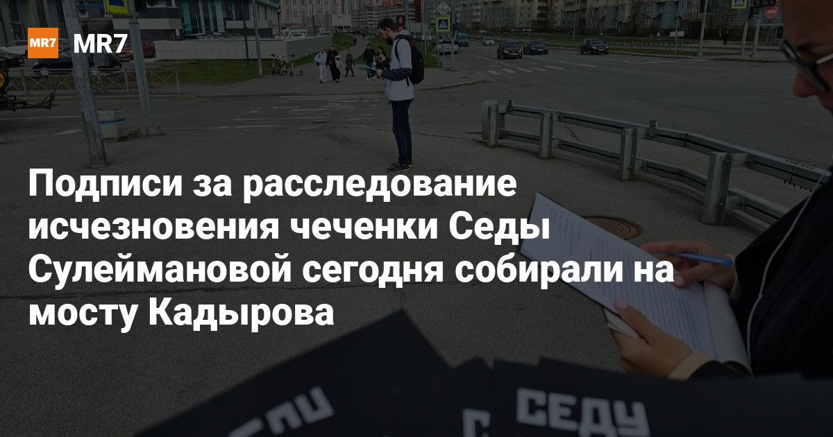 Ещё одна акция со сбором подписей под обращением в администрацию президента по «делу Седы Сулеймановой» сегодня прошла в Петербурге. Активисты вышли в заметных красных и белых футболках на мост Кадырова.