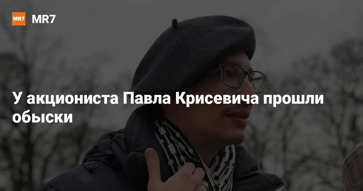 Обыски по делу галериста Марата Гельмана* прошли в квартире акциониста Павла Крисевича. Об этом он сообщил в своём telegram-канале. Крисевич отметил, что во время обысков ничего не забрали, однако после этого пришлось проводить уборку.
